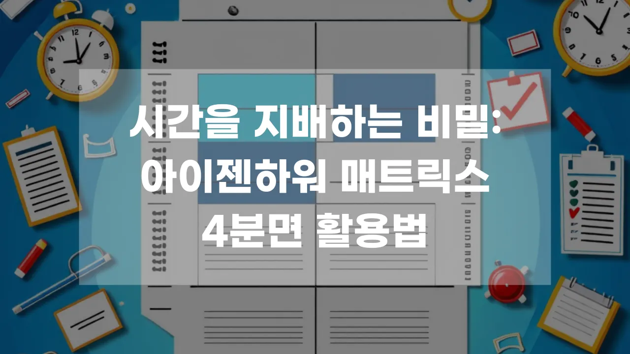 아이젠하워 매트릭스는 간단하지만 강력한 시간 관리 도구로, 중요한 일을 우선 처리하면서도 긴급한 일에 쫓기지 않도록 도와줍니다. 이를 통해 더 체계적이고 목표 지향적인 시간 관리를 실천해보세요.